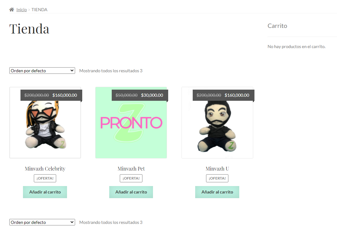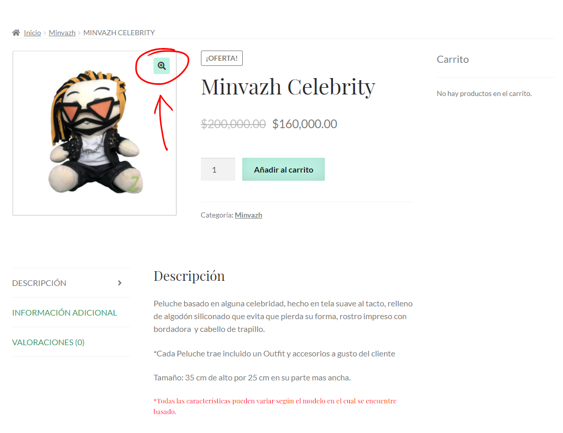 - Puedes darle en el botón de «Añadir al carrito» si ya sabes cual Minvazh quieres, de lo contrario, puedes darle clic en la imágen para llevarte a la siguiente página y así mismo puedas detallar cada Minvazh.