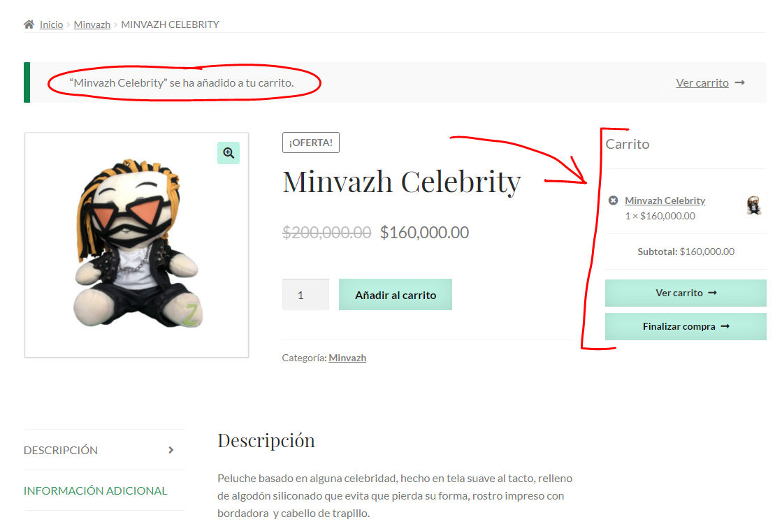 - Si ya decidiste que Minvazh quieres, en cualquier momento puedes darle «Agregar al Carrito» y se verá reflejado en el «Carrito de Compras»
